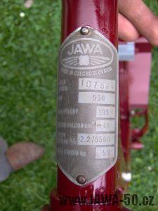 Poslední provedení Jawy 550 s karburátorem Jikov 2914 Hz, madlem na zadní kyvné vidlici a se sedadlem odklopným dopředu.