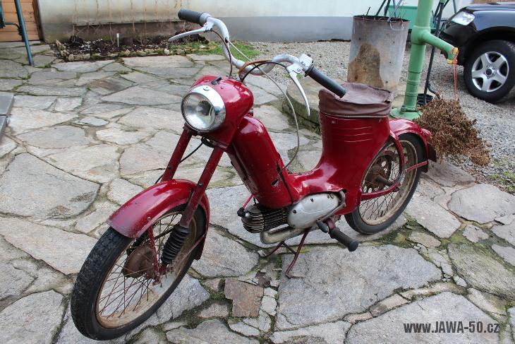 Již někdy v roce 1947 přišel za Josefem Jozífem, který v 30. letech jako mladý vypracoval velmi zdařilou konstrukci úspěšného motokola Jawa 100 Robot, tehdejší technický ředitel Jawy JUDr. Jaroslav Frei s návrhem, aby navrhnul maloobjemový motocykl do 50 cm3. Jozíf o vývoji tohoto motocyklu měl pomlčet a finančně se měli vyrovnat mezi sebou. Jozíf nabídku přijal, ale s podmínkou, že na projektu nebude pracovat sám, Frei proti tomu nic nenamítal. Jozíf, který rozkreslil celou podvozkovou část si jako spolupracovníka vybral Jana Křivku, který navrhl motor. Křivkův motor byl uspořádáním inspirován motorem J. F. Kocha, za války tajně vyvíjeného ve spolupráci s Jawou. Po zpracování a finančním vyrovnání si Dr. Frei vzal výkresy s sebou domů a bylo ticho.