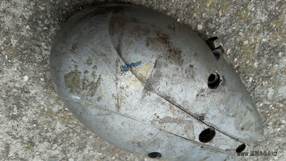 První provedení třídílného krytu pod nádrží na motocyklech s levostranným karburátorem Jikov 2912.