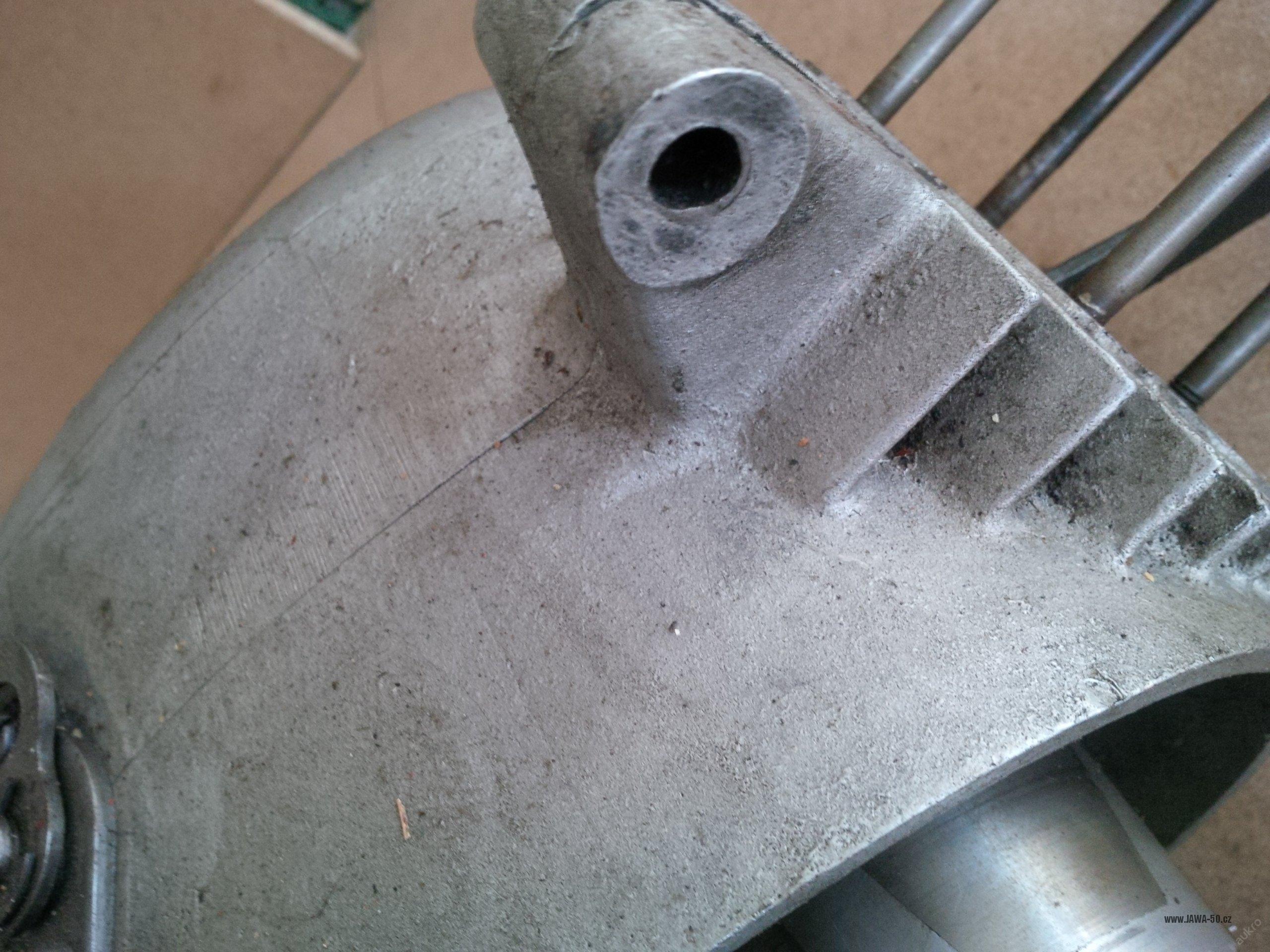 Hliníkové (odlité) víčko zapalování na pravém víku motoru nahrazeno pozinkovaným plechovým výliskem.