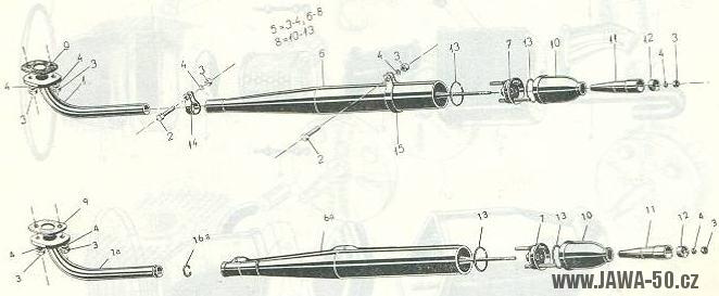 U modelů Jawa 20, Jawa 21, Jawa 23A Mustang