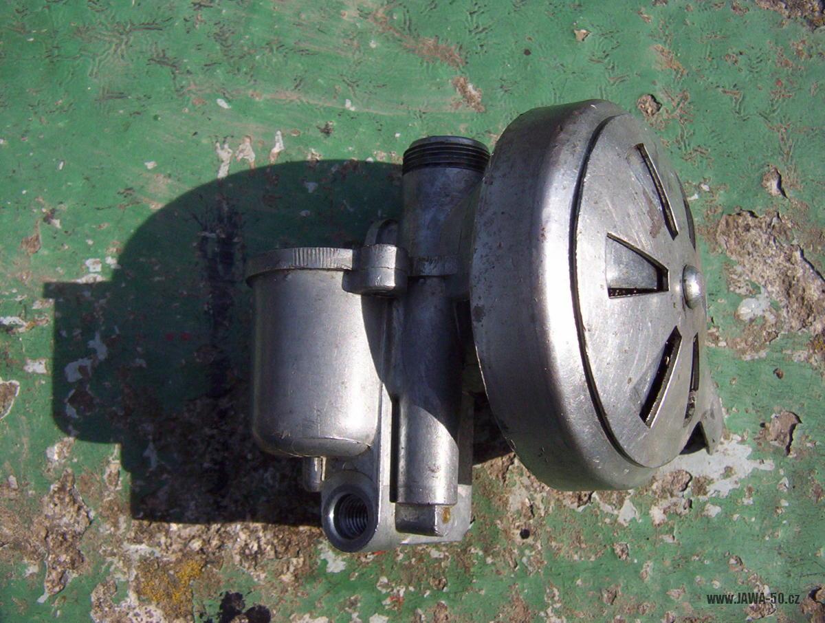 Pravý díl měl ve spodní části okrouhlý výřez pro ovládání škrcení vzduchu na čističi karburátoru.